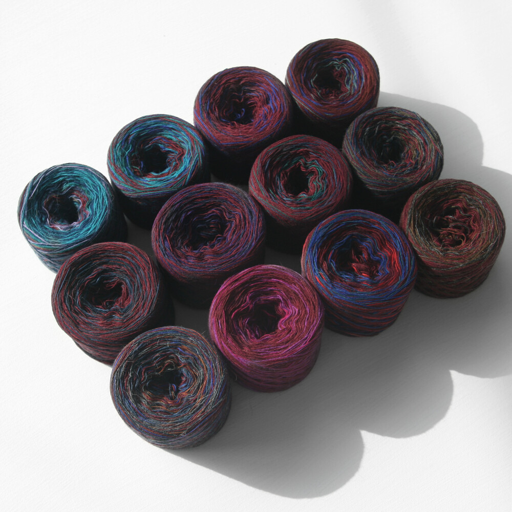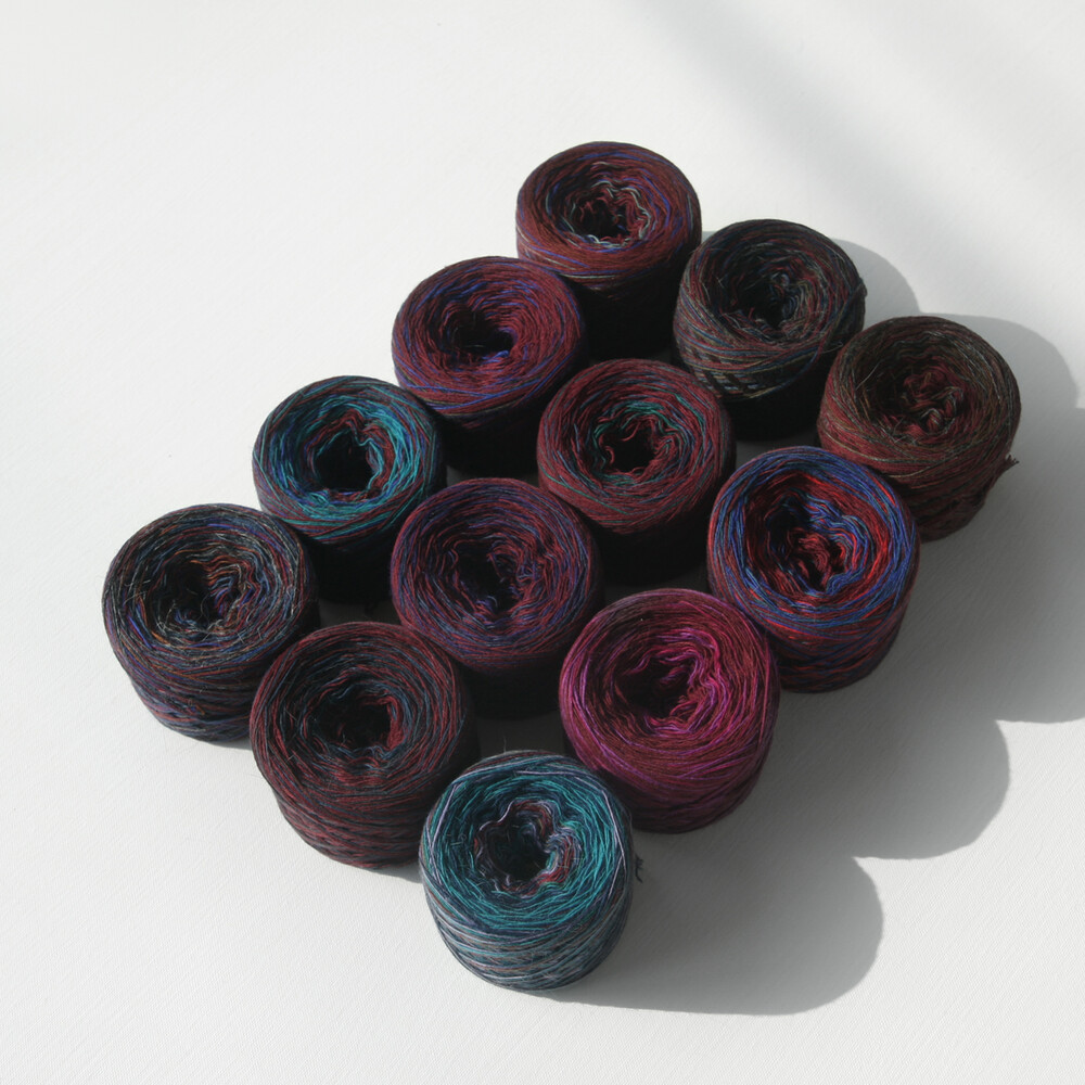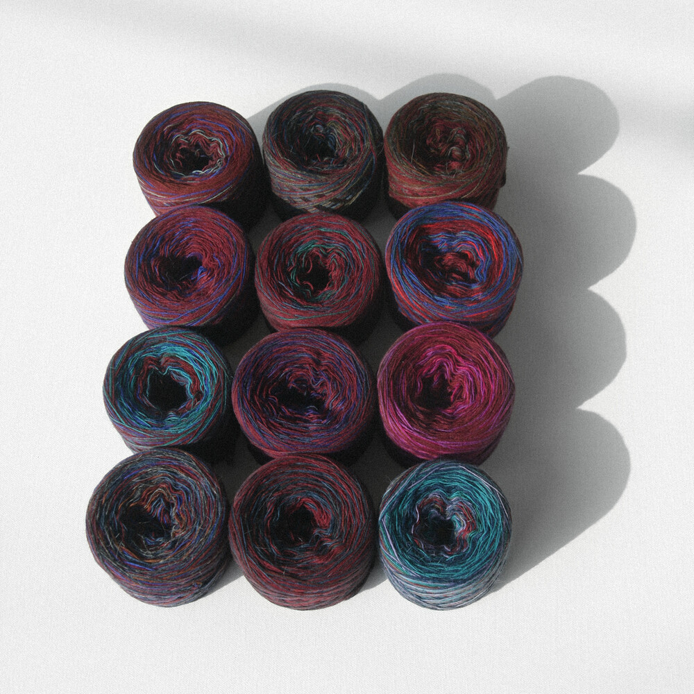 베이스로 다양한 컬러를 섞어 만든 실 패키지입니다.