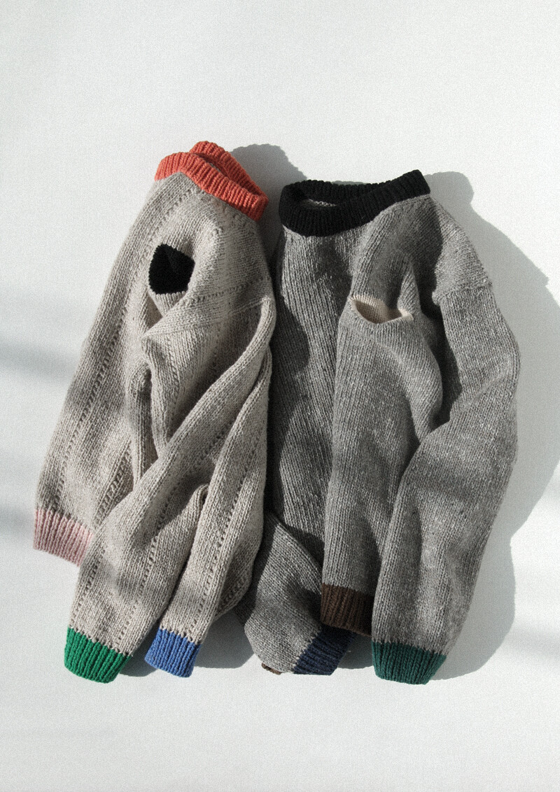 배색으로 포인트를 준 스웨터입니다.